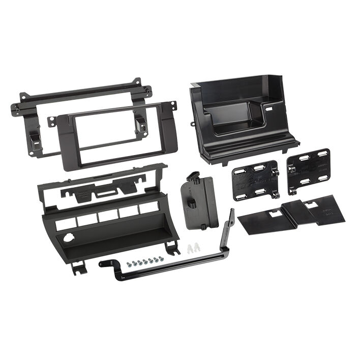 2-DIN facia-plade til BMW i sort giver mulighed for professionel montering af en DIN eller Double DIN eftermarkedsradio, så den passer præcist til instrumentbrættets design.