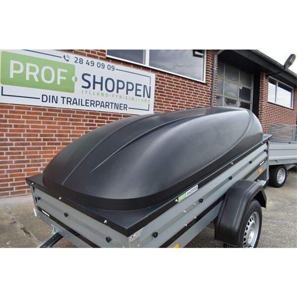 Låg med gasdæmper og lås, alle beslag og ekstra jørnestytter følger med. Ved brug af låget får man en helt lukket trailer med mulighed for at sikre sig ved brug af låsen, en optimal måde at opbevare ting over flere dage.