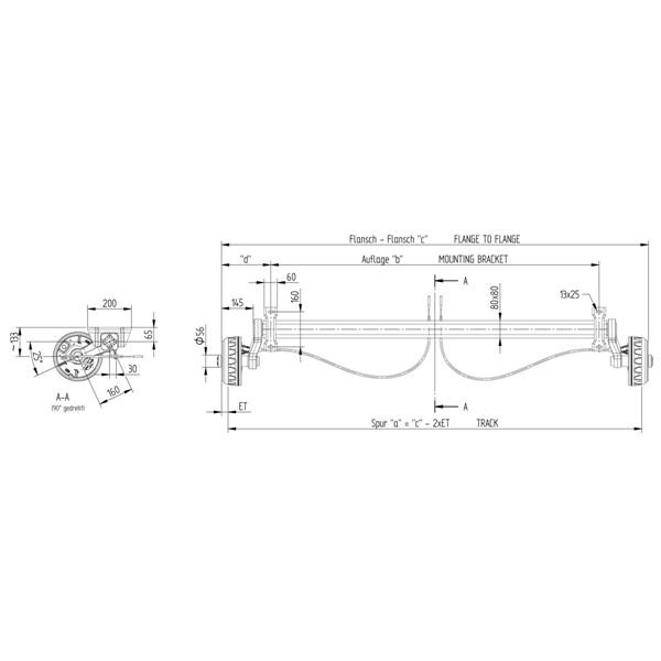 Aksel – 20-2425/1 med maksimal belastning på 1500Kg til trailer