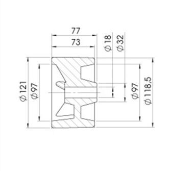 Denne AL-KO Compact siderulle er i mål på Ø121 mm gange 77 mm og passer til aksler på Ø18 mm.