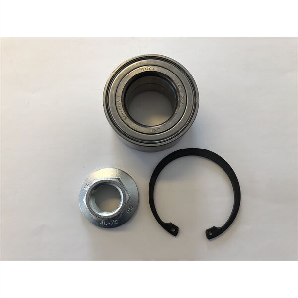 Her får du et komplet AL-KO Type 2361 hjullejesæt med leje, låseringe og møtrik. Lejet er af den vandtætte 2ZZ-type med metalsider.