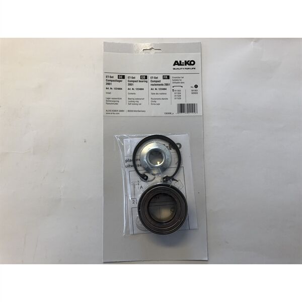 Forstærket udgave af AL-KO's Type 2051-leje i vandtæt 2ZZ-version inklusive låsering og møtrik.