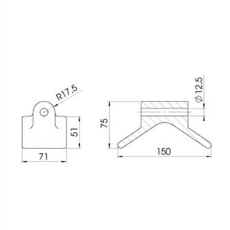AL-KO Profi RP-3 måler 150x71 mm og passer til de fleste bådtrailere. Støtten monteres på et 12,5 mm bolthul.