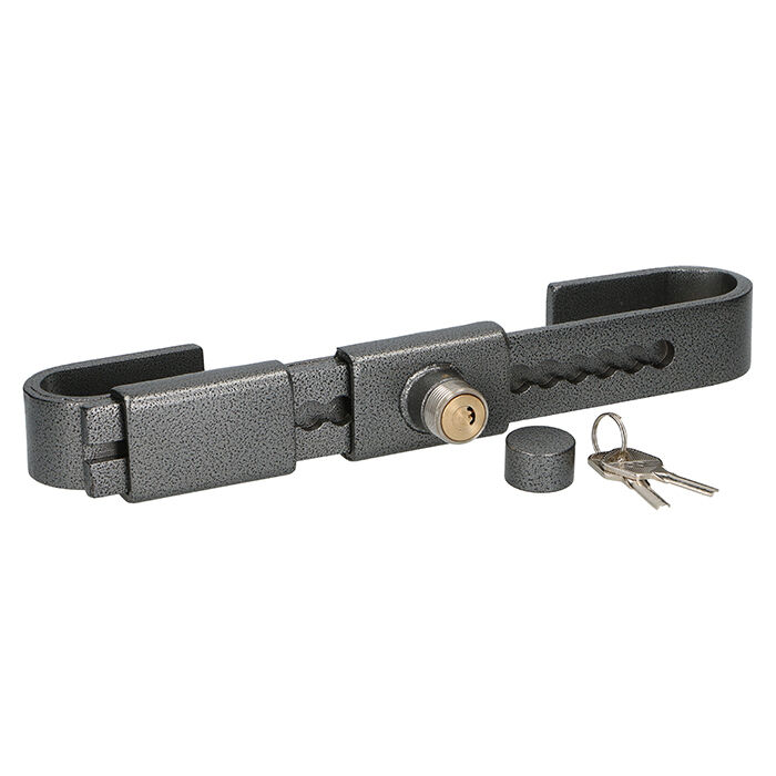 Containerlås fra Allride• Hærdet stål• Mål: 100 x 50 x 350 mm• Vægt: 2,539 kg.• Inkl. 2 nøgler