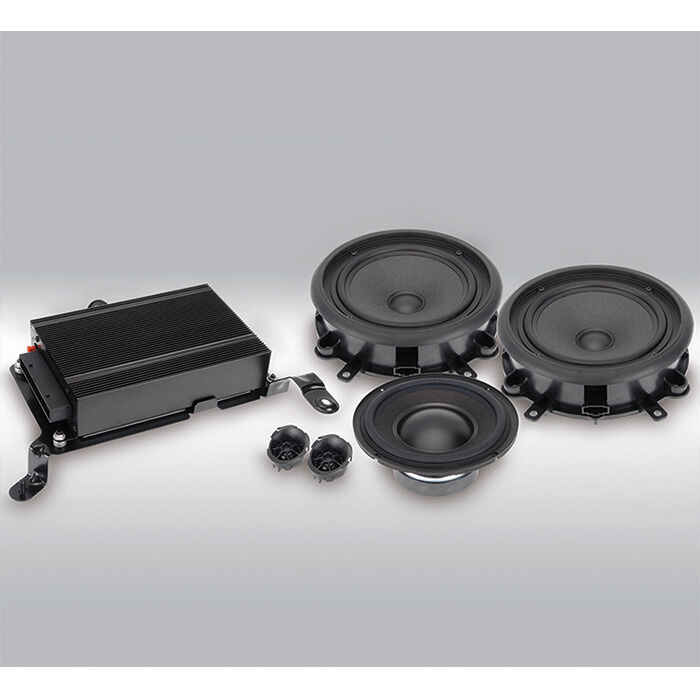 Systemet inkluderer et fuldt 2-vejs højttalersystem, som indeholder højtydende dørhøjttalere og diskanter plus en 120W subwoofer, som passer præcist i det originale Audi monteringshul.