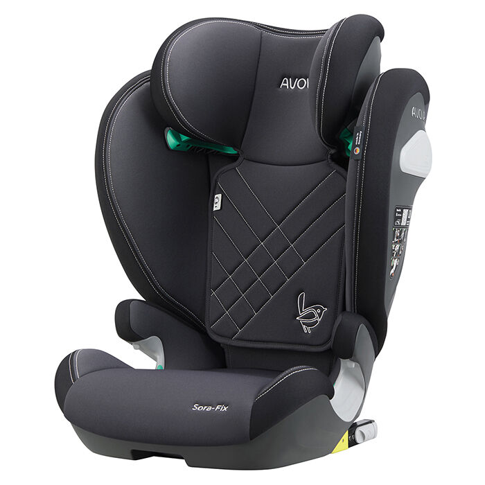 AVOVA SORA-FIX er godkendt som barnestol til et barn med størrelser på 100-150 cm, cirka fra 3 til 12 år. Den kan installeres fremadvendt på køretøjssæder, der er godkendt i henhold til UNECE-regulativ nr. 16 eller tilsvarende standarder, fastgjort til køretøjets ISOFIX-ankringspunkter. Den er kompatibel med universelle siddepositioner i køretøjer.