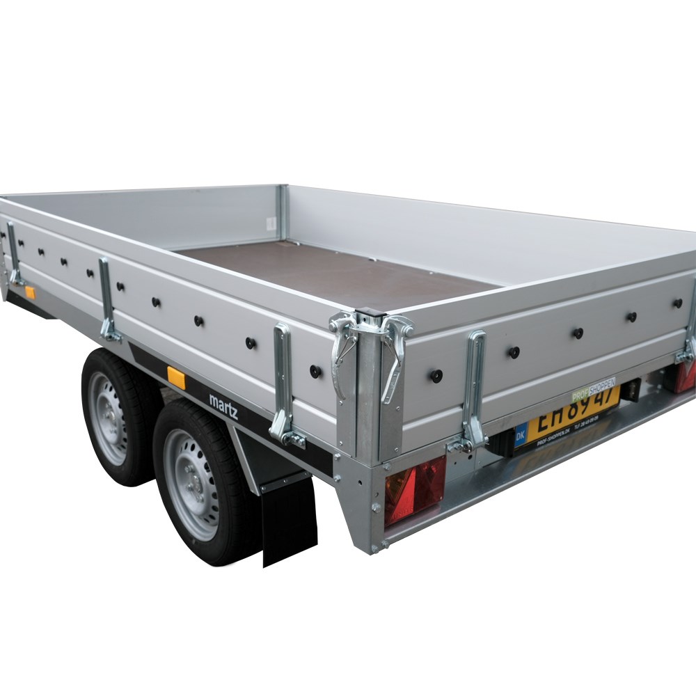 Ud over de standard nedfældelige sider, har denne model også mulighed for at montere ekstrasider i aluminium. Dette giver dig endnu mere fleksibilitet og gør det muligt at transportere endnu mere gods. Aluminiumssiderne er både lette og stærke, og de er med til at holde trailerens vægt nede.