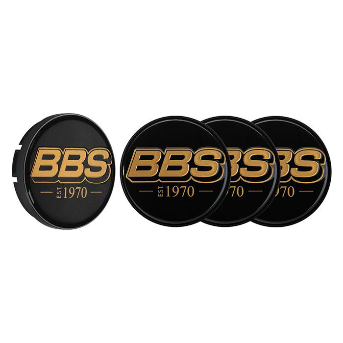 BBS 2D Centerkapsel est. 1970 prægetBBS 2D Centerkapsel est. 1970 præget Sort med Logo guld Ø70,6mm - sæt med 4 stk