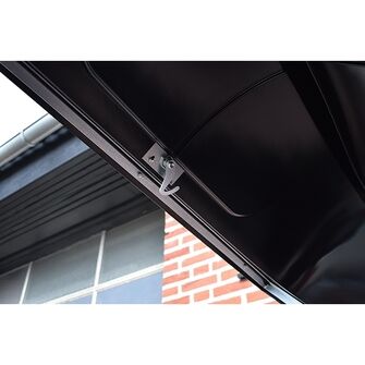 Denne hus- og havetrailer er udstyret med for-monterede beslag, der gør det muligt at tippe traileren i lodret position, så traileren fylder mindst muligt ved opbevaring i fx en carport.