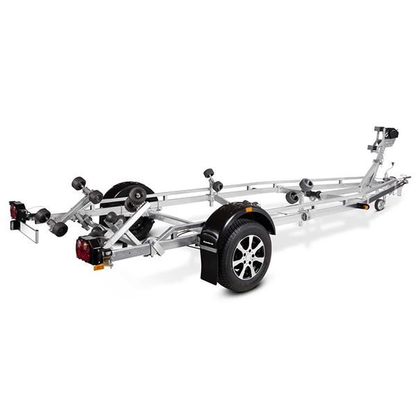 Denne trailer er bremset og kan fragte en båd op til 22 fod. Den er udstyret med et svejst og har et forstærket V-formet chassis.