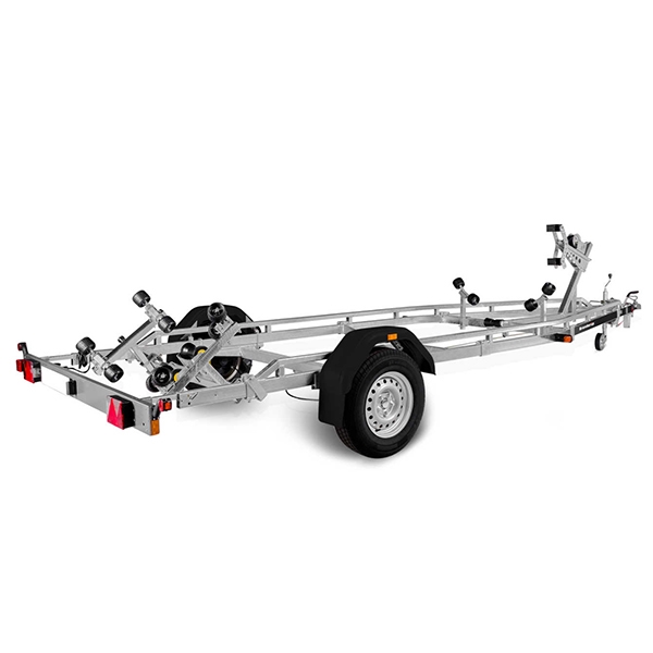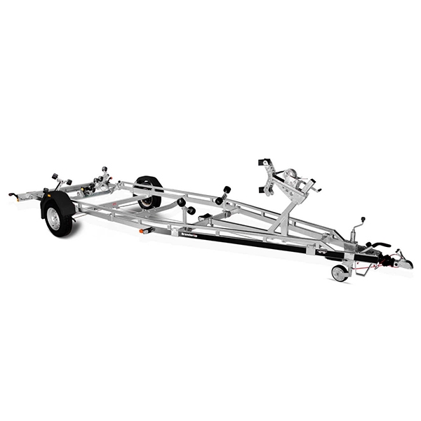 Den har et forstærket V-formet chassis og udstyret med superruller, forstærkede kølruller og justerbare dobbelte sideruller - dette gør det nemt for dig at tilpasse traileren til din båd!