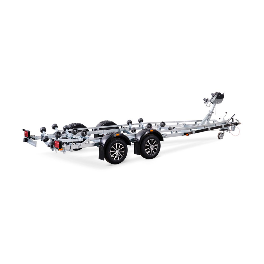 Traileren er udstyret med et robust V-formet chassis og imponerende køreegenskaber. Dobbelt adaptive superruller er omhyggeligt placeret for optimal beskyttelse af båden, specifikt ved de stærkeste områder af skroget.