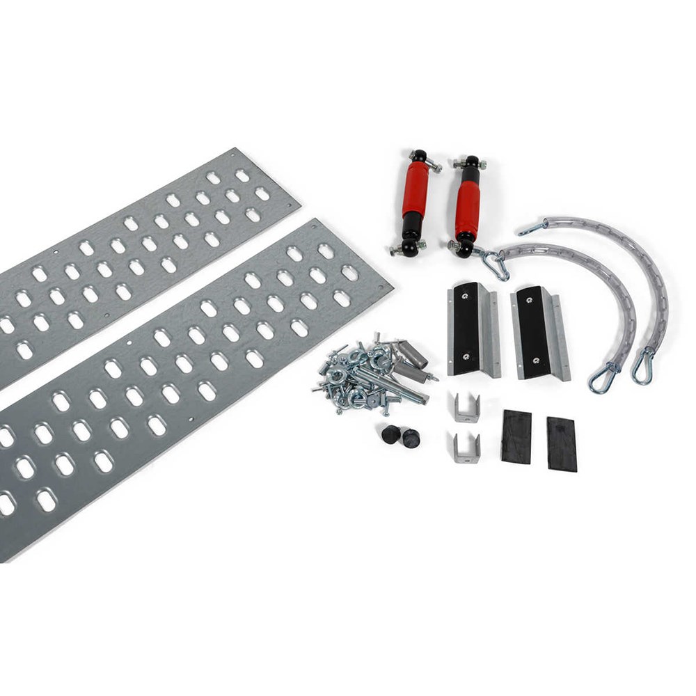 Opkørselsudstyr til Brenderup 2260 og 2300. Består af gummipropper, støddæmpere, afstandsstykker, kæder til bagsmækken og køreskinner.