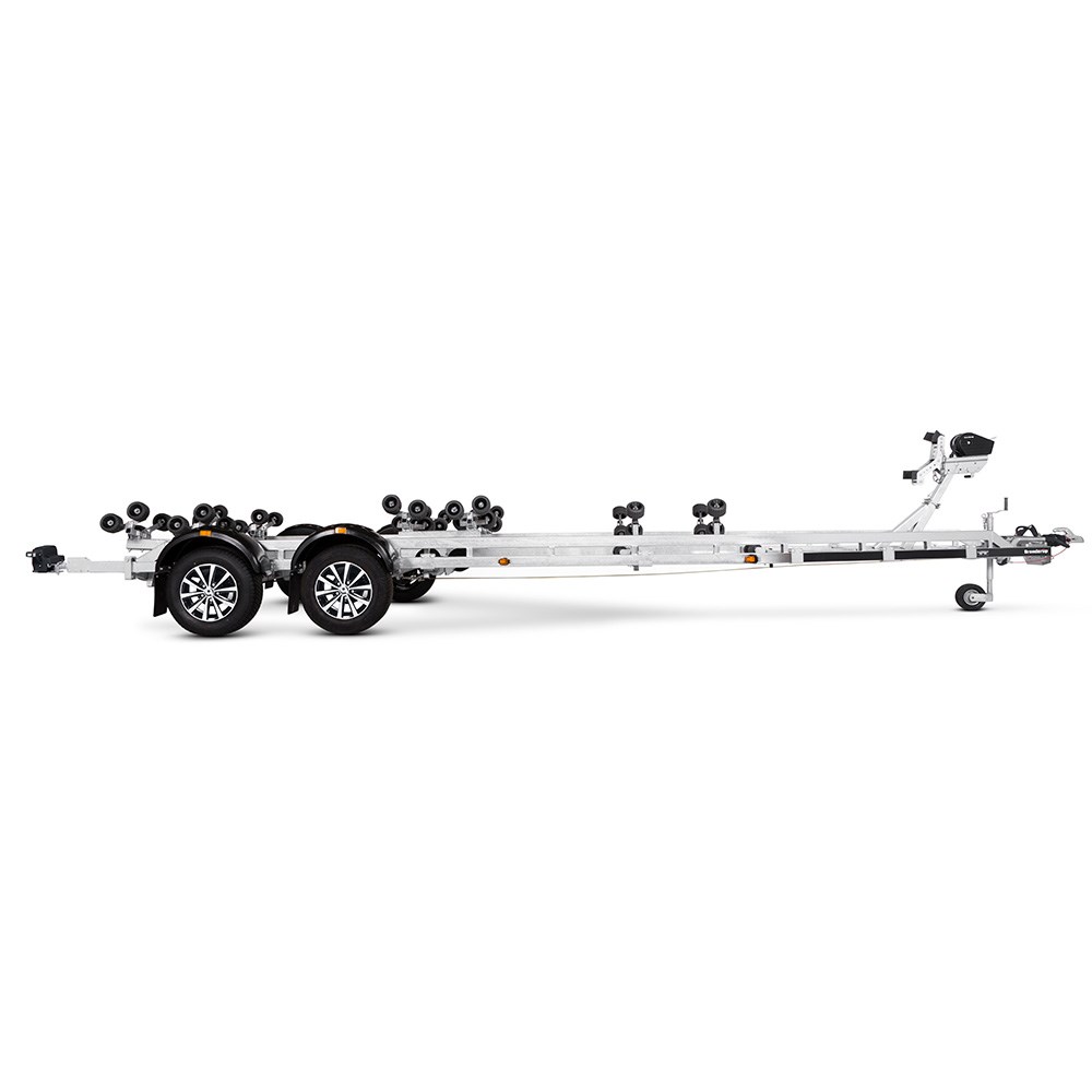 Rustfrie bremsekabler, vandtætte lejer og heldækkende skærme – der også fungerer som praktiske trinbræt – bidrager til lang levetid og øget brugervenlighed. De dobbelte multijusterbare sideruller sørger for, at båden altid ligger stabilt og korrekt placeret på traileren.