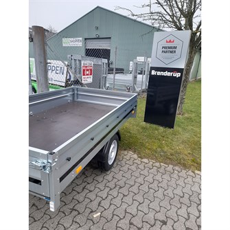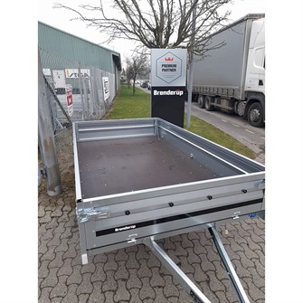 Åben trailer med stort ladmål. Bemærk at siderne er faste og kun for- og bagmæk er nedfældelige.