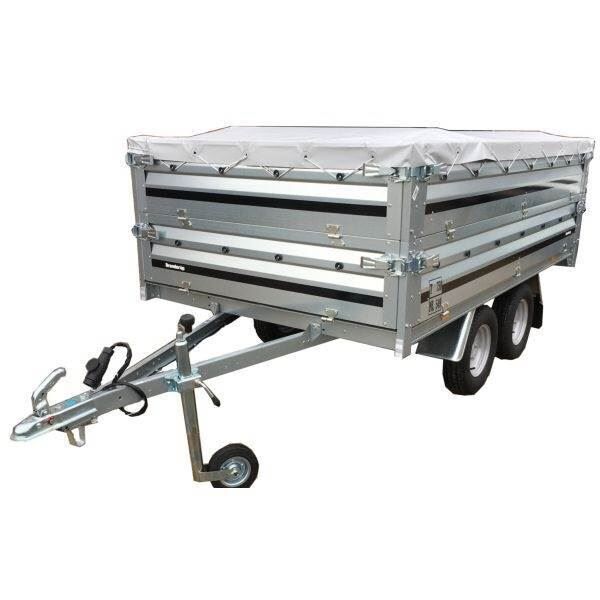 Til denne trailer medfølger 35 cm. forhøjede sider, en presenning med to understøtningsbøjler samt næsehjul og kasselås.