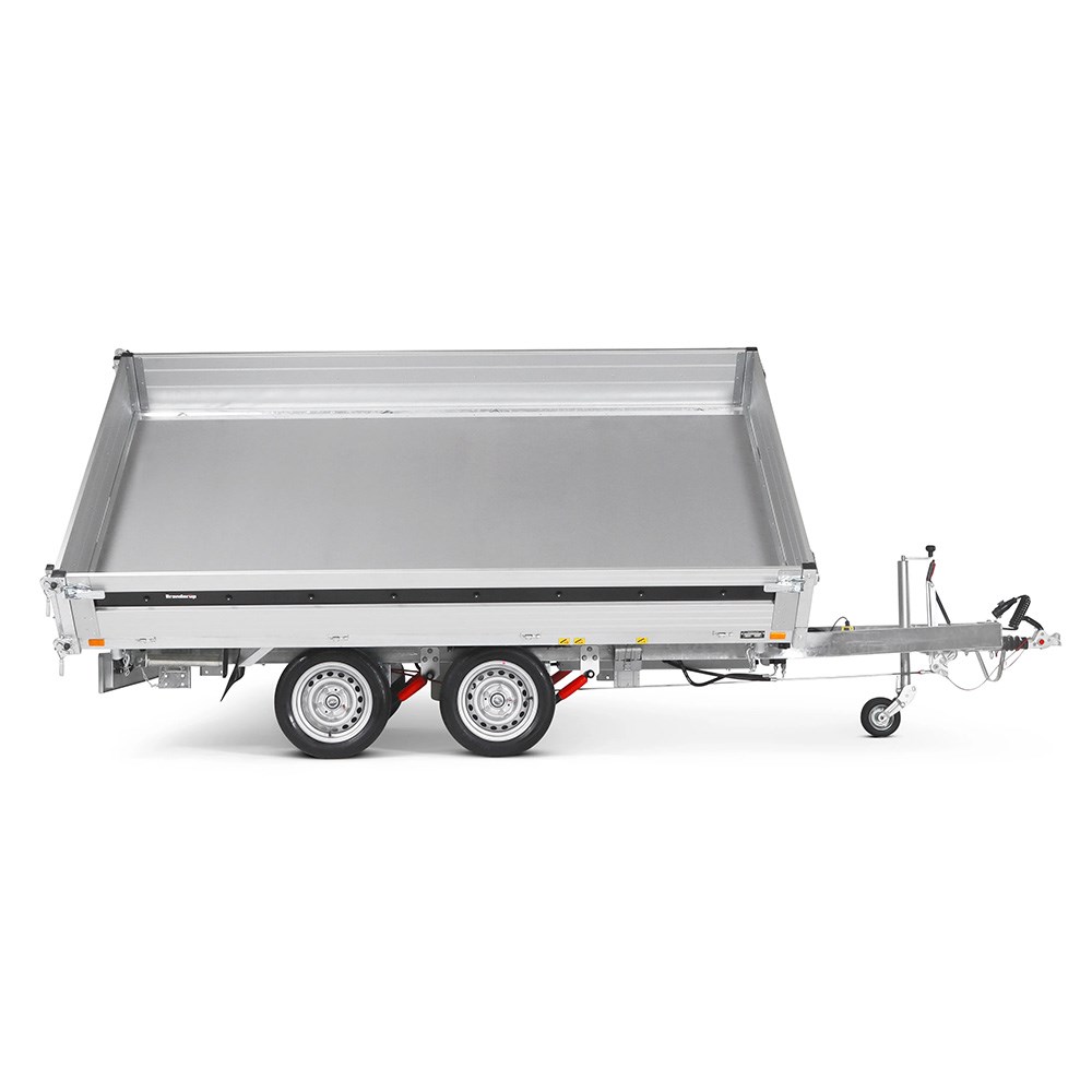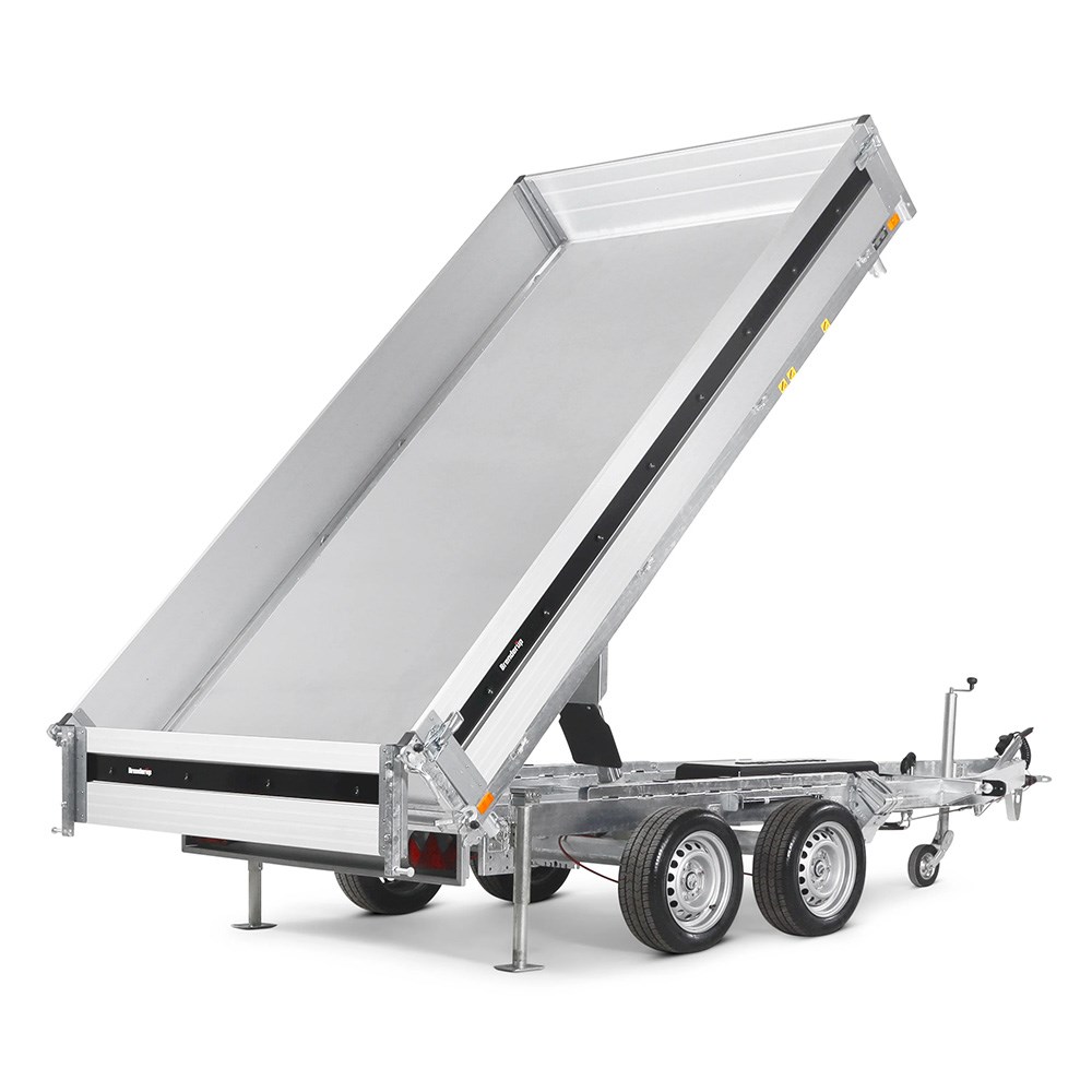 Som standard leveres traileren med aluminiumssider og en tophængslet bagsmæk, og alu-siderne kan både nedfældes eller tages helt af, hvilket er uhyre praktisk i forbindelse med læsning af store emner. Også hjørnestolperne er aftagelige.