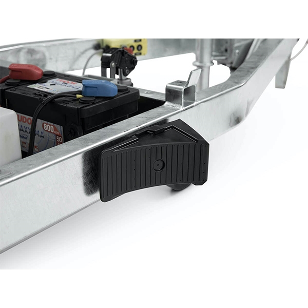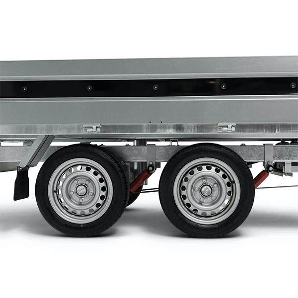 Traileren er robust med to aksler og forstærket stålbund. På de bagerste hjørnestolper er der monteret beskyttelsesplader for at minimere jord osv. sætter sig når traileren bliver tippet.