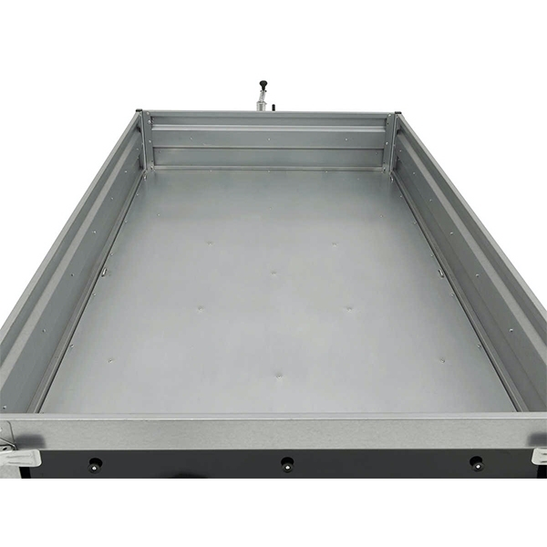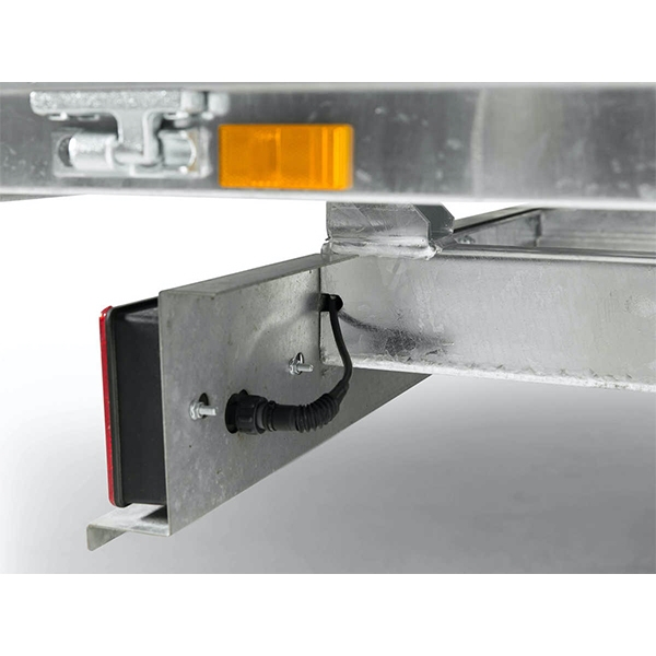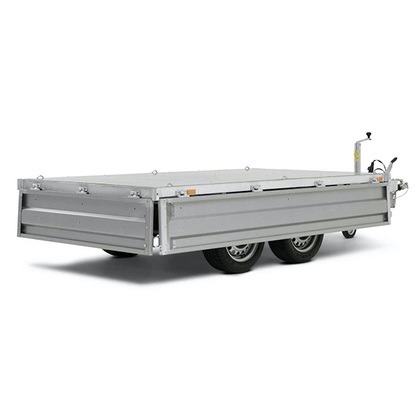 Alle sider og hjørnestolper på traileren er nedfældige og aftagelige, som sørger for at traileren nemt og sikkert kan læsses ude ved f.eks. et byggemarked.