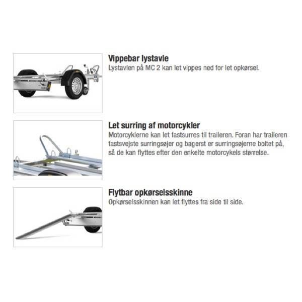 MC2 er lavet til at fragte op til to motorcykler, og du får her en trailer, som takket være sit lave tyngdepunkt er superstabil at køre med.