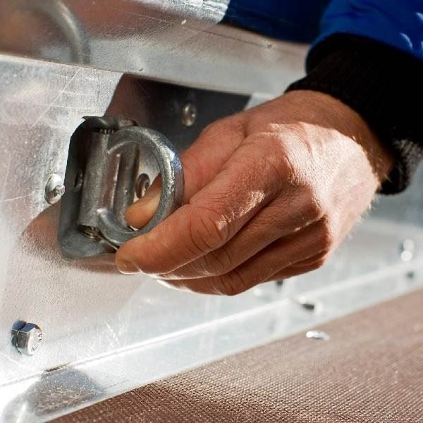 Der er indfældede surringsøjer i trailerens sider, der gør det nemt at fastspænde maskiner samt eventuelt gods.