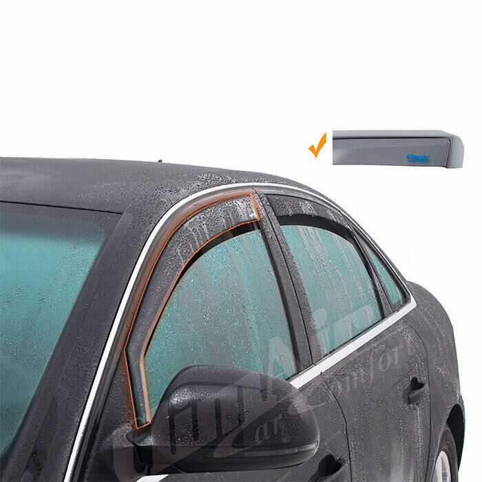 Regn- og vindskærme fra Climair har mange fordele. De sikrer blandt andet, at der ikke kommer regn gennem åbne sidevinduer, de er insektafvisende, de optimerer luftcirkulationen, de giver mindre vindstøj, de sørger for at der ikke er nogen varmeakkumulering, de har en aerodynamisk styling, de er støbt af akryl af høj kvalitet, og så er de desuden nemme at montere.