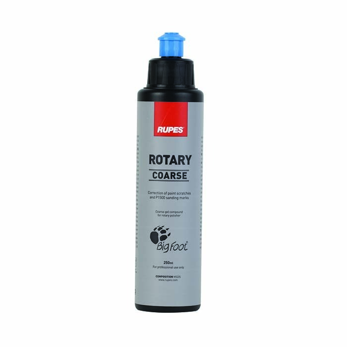 BigFoot poleringsmidler til roterende poleringsmaskiner er specielt designet til at give Rupes LH19E roterende poleringsmaskine maksimal effektivitet. De er velegnede til enhver bilmaling, lakering eller OEM. Det er det ideelle produkt til at opnå den korrekte blanding af hurtig skæring og god finish. Denne ”Grov Rotary” er en højtydende blanding, som anbefales til første trin af polering. Kornet er det mest "aggressive" af BigFoot-slibemidler og bruges til hurtig fjernelse af mærker og ridser. Samtidig er den grove blanding meget effektiv til at retablere maling og skabe en høj grad af glans.