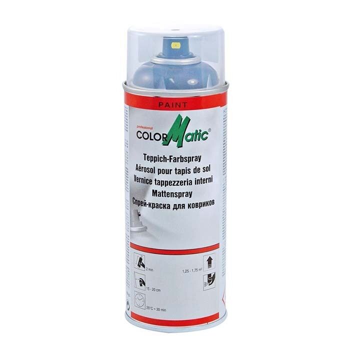 ColorMatic Tekstilspray er en brugervenlig spray til genopfriskning og indfarvning af tekstilmåtter, tæppegulve, tekstilbilmåtter og -tæpper inden for biler og brugskøretøjer. Også god klæbeevne på gummi og plast. Giver god vedhæftning og bevare elastikteten.