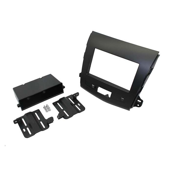 Radioramme i farven sort til installation af en 1- eller 2-DIN eftermonteret enhed i Mitsubishi Outlander.