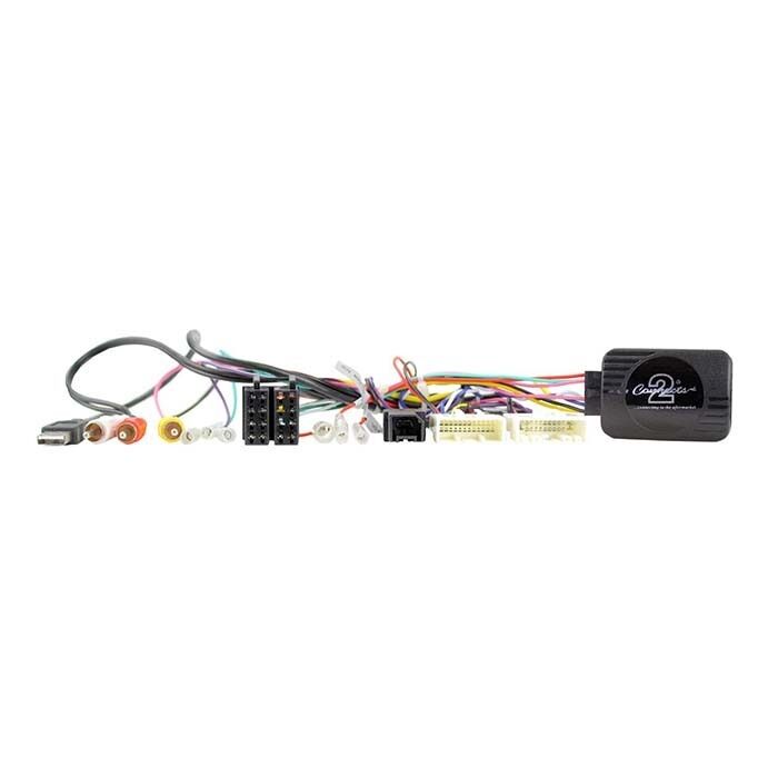 Dette ratinterface tillader opgradering af en fabriksmonteret radio til en eftermonteret enhed, mens de originale rat kontroller, telefonknapfunktioner, bakkamera og USB-indgang bevares.