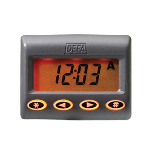 DEFA Varmestyring. Futura styringsenheden sørger for, at bilen er varm til ønsket tid. Futura har to hentetider (hentetid er den tid, hvor bilen skal bruges), som fungerer uafhængigt af hinanden. Hentetiderne er døgnrepeterende og er velegnet til debilejere, som bruger bilen ved samme tid hver dag. Foruden at være en avanceret styringsenhed for DEFA bilvarme, kan Futura enheden vise udetemperatur, batterispænding/ladespænding samt 0-føre varsler. Futura enheden er udstyret med displaybelysning som er tændt, når motoren kører, eller når en af knapperne betjenes. Udvendig temperatursensor købes seperat (721 418071).