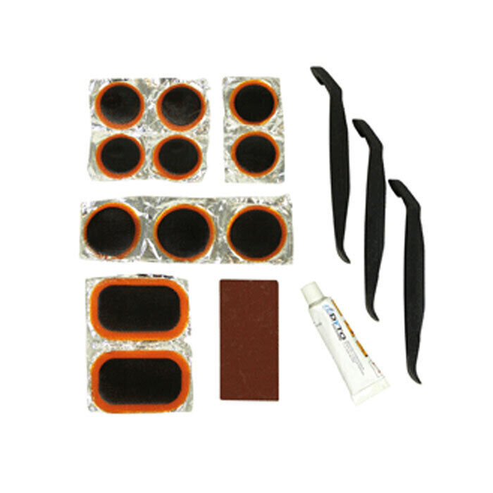 Med dette lappesæt kan du hurtigt reparere dine cykeldæk hvis uheldet er ude.