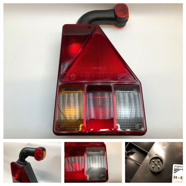 Earpoint 1 højre baglygte med bremselys, baglys, blinklys, baklys, rød/hvid markeringslys og trekantrefleks.