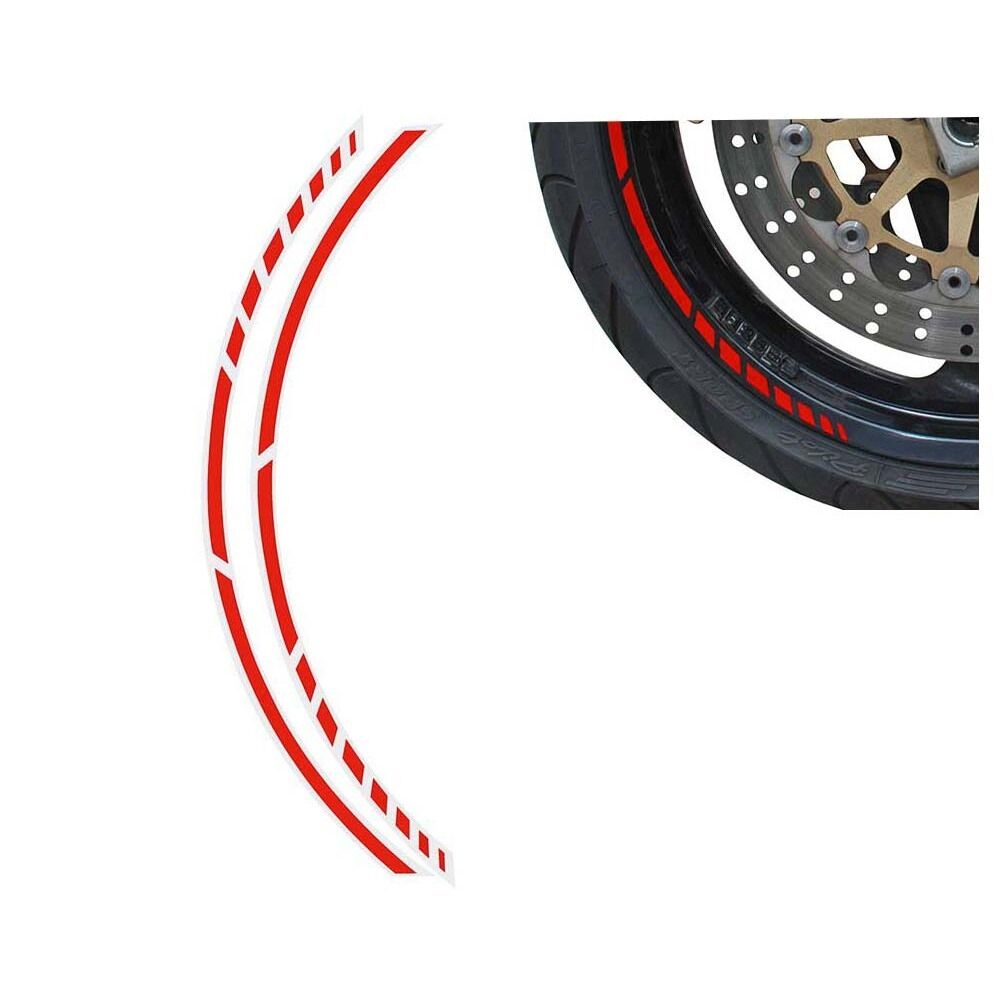 I pakken medfølger: 14 lige store cirkelsegmenter (3 fælgbånd per side af fælgen samt 1 reservebånd til hver side af motorcyklen)