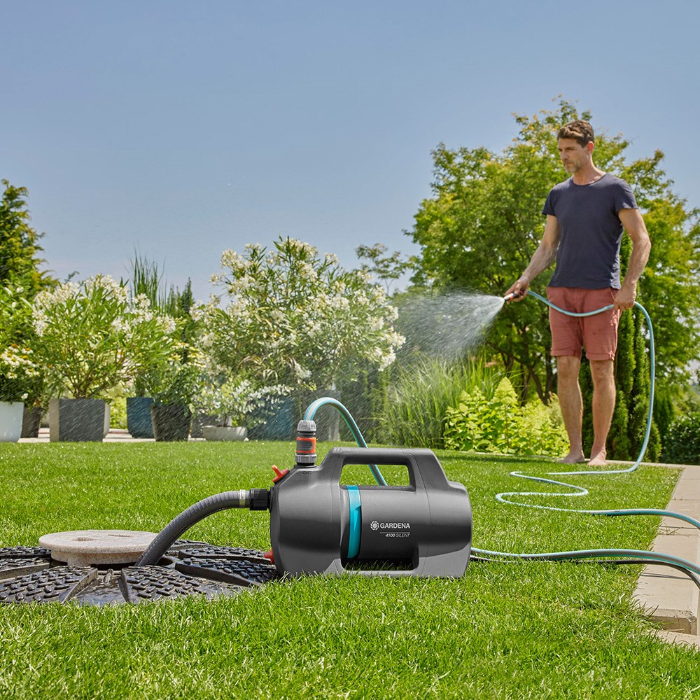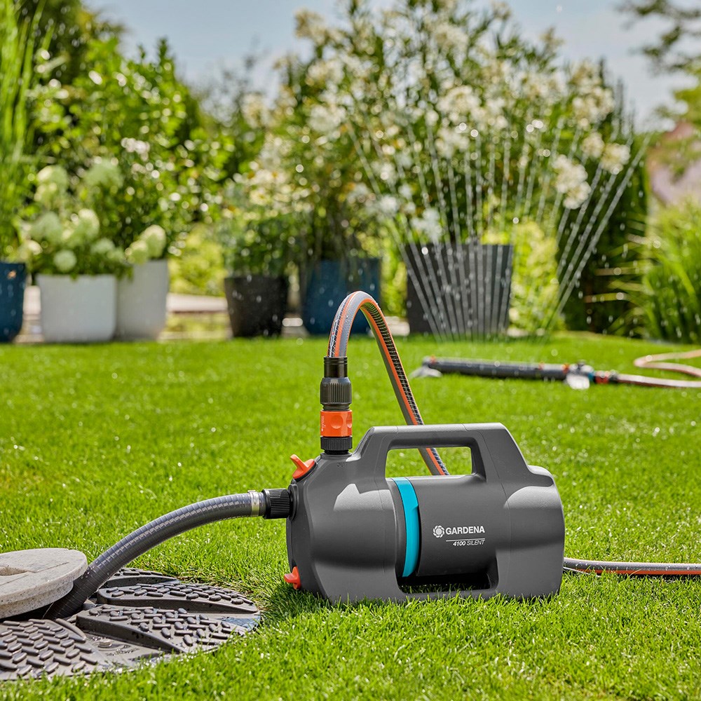 Gardena trykpumpe 4200 Silent Sæt har en automatisk sikkerhedsfunktion, der slukker pumpen, hvis den kører tørt, og den er også udstyret med en støjsvag motor, der gør den ideel til brug i tæt beboede områder.