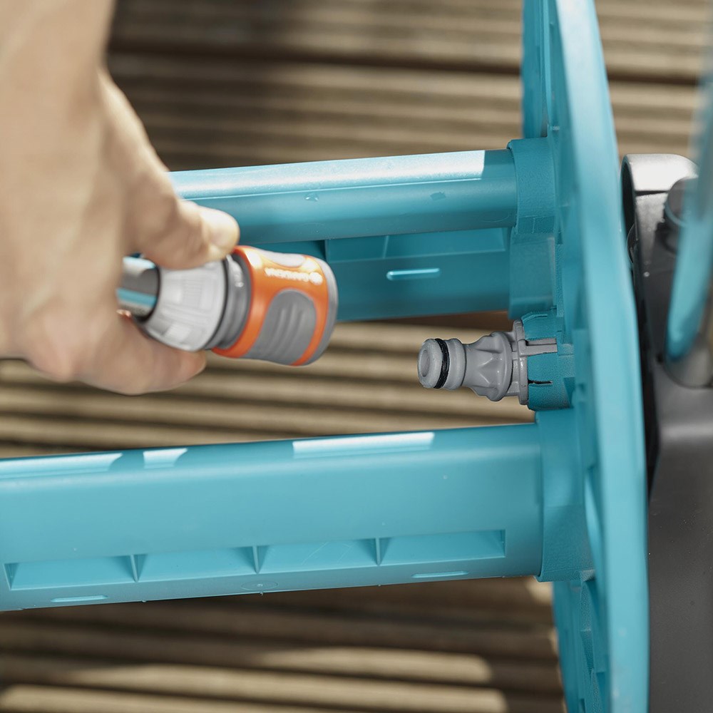 Vognen leveres her som et sæt med Gardenas 20 meters Classic-slange, men kan også udstyres med andre slangetykkelser, og klarer således op til 40 meter slange med 1/2" slangetykkelse.