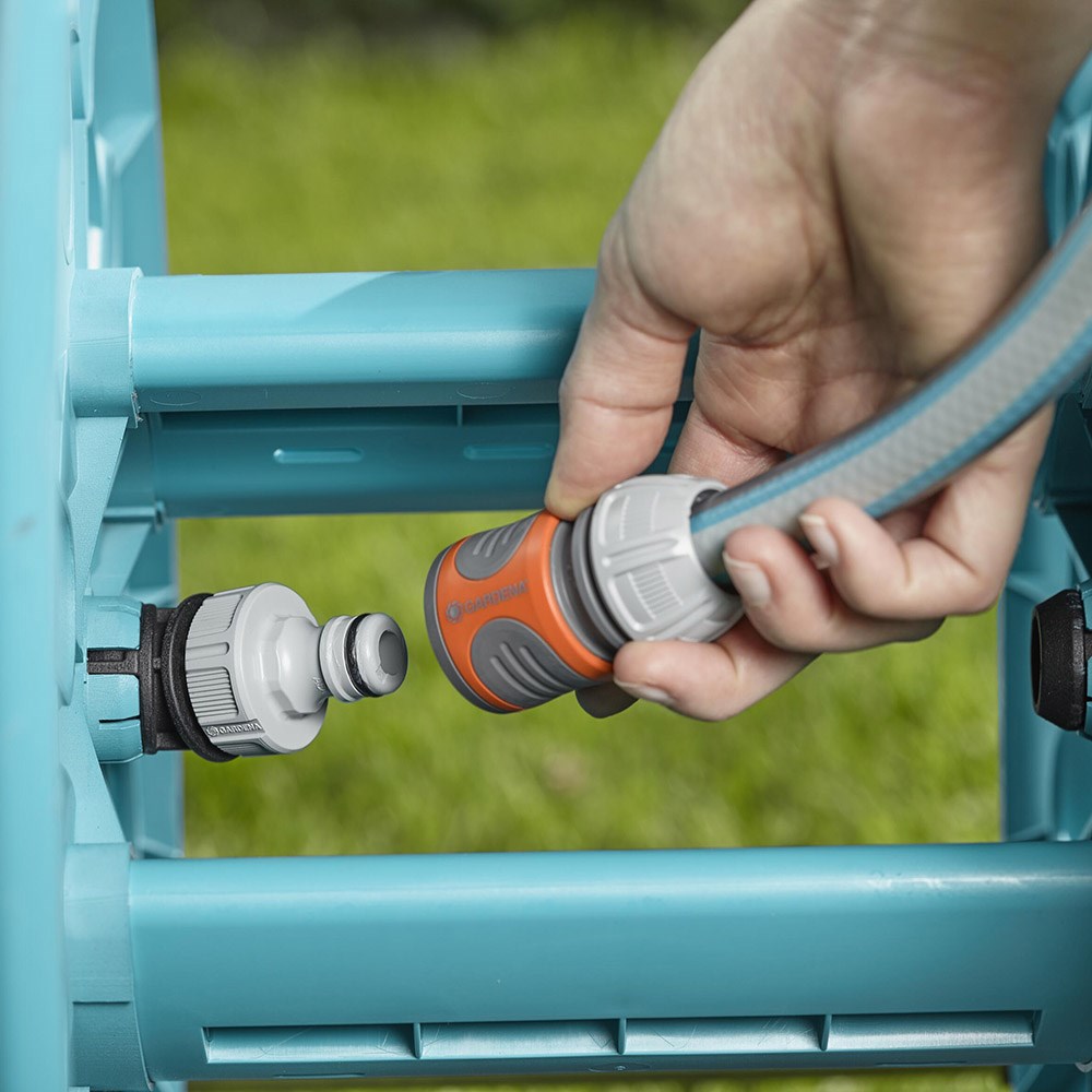 Slangevognssættet her leveres med Gardenas 20 meters Flex-slange, men findes også i udgaver uden slange, så du kan tilpasse med den haveslange, du allerede har.