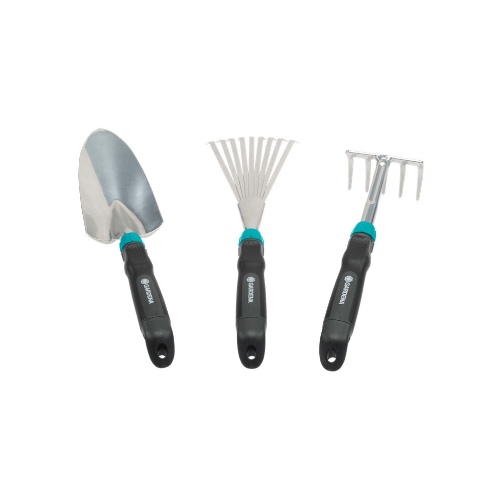Med de 3 dele i Comfort-sættet fra Gardena får du optimale håndredskaber, som du vil kunne bruge både på altaner, i højbede og i små såvel som store haver samt måske på en tur i dit kolonihavehus eller på kirkegården, hvor redskaberne er nemme at have med i bilen eller en taske.