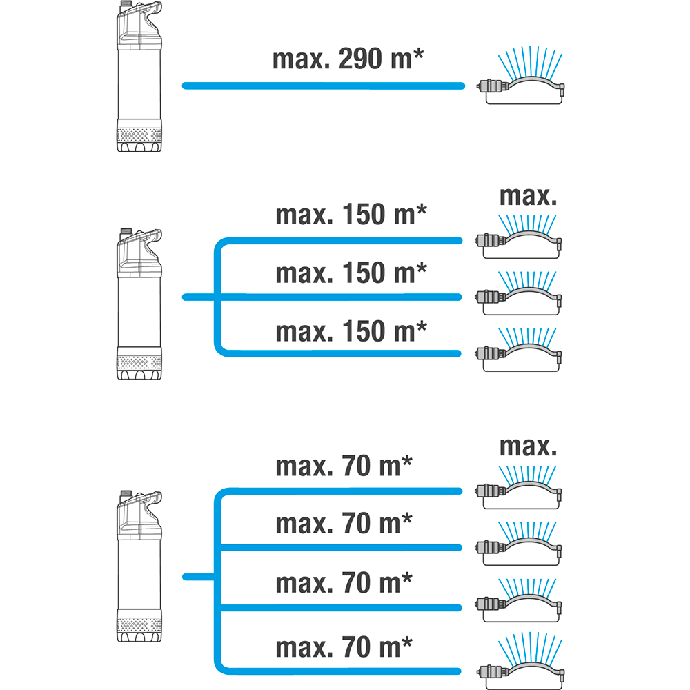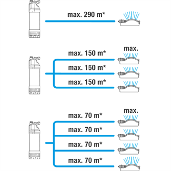 Med dyk-/trykpumpen 6100/5 Inox Automatic fra Gardena får du en af de mest kraftfulde og alsidige pumper til både vandforsyning og havevanding. Den er udviklet til at håndtere store mængder vand fra dybe brønde og regnvandsbeholdere, og den næsten lydløse drift gør den ideel til både indendørs og udendørs brug. Med en motoreffekt på 1100 W, en kapacitet på op til 6.100 liter i timen og et tryk på 4,7 bar kan pumpen drive helt op til fire store sprinklere på én gang.