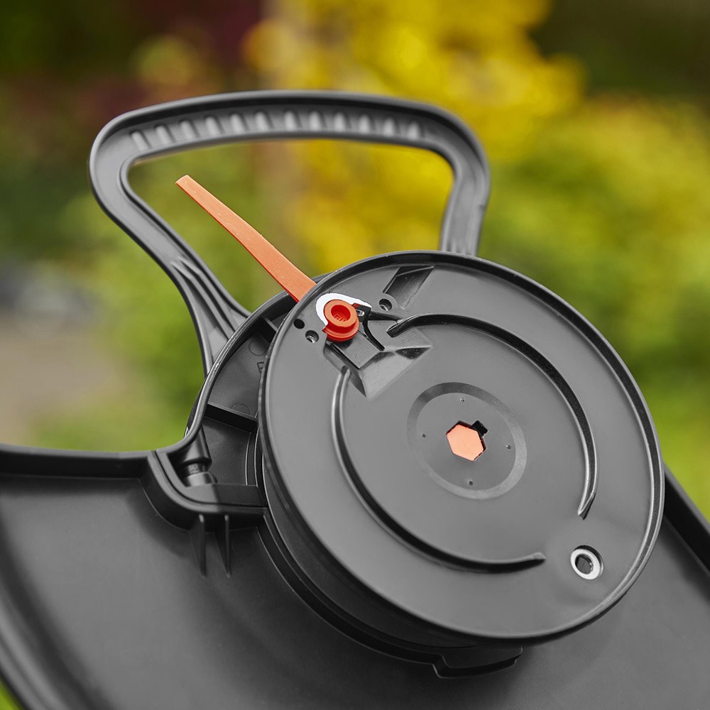 Trimmerhovedet kan også vippes, så det er nemt at trimme græsset ind under fx havetrampoliner, buske og så videre.