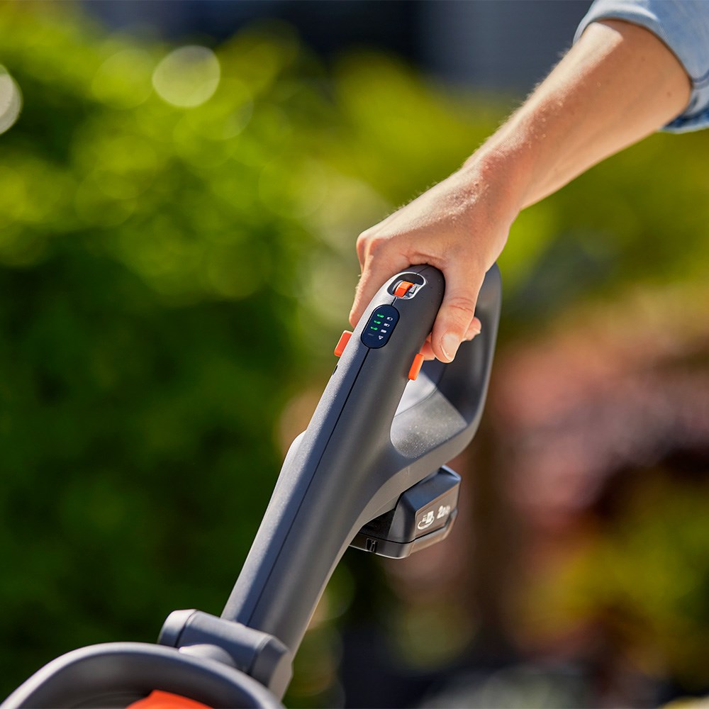 Med en vægt på blot 2 kg (uden batteri) og et højdejusterbart teleskoprør tilpasses den enhver bruger. Det ergonomiske håndtag og det ekstra greb foran sikrer komfort og nem betjening under arbejdet. Det højdejusterbare teleskoprør sikrer, at den passer til brugere i alle højder.