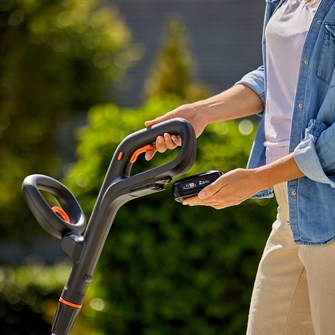 GARDENA's innovative batteridrevne fugerenser EasyWeed 1800/18V gør ukrudtsfjernelse til en simpel og præcis opgave med et enkelt tryk på en knap. Det komplette sæt inkluderer batteri og oplader for bekvemmelighed.