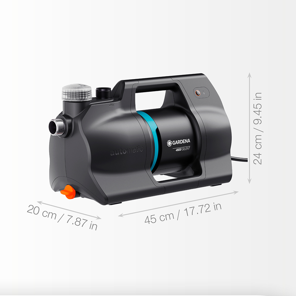 Den elektriske trykpumpe 4600 Silent fra Gardena er udviklet til dig, der ønsker en kraftfuld og driftssikker løsning til både havevanding og husholdningsbrug. Pumpen leverer automatisk den rette vandmængde og det nødvendige tryk præcis dér, hvor du har brug for det, og de indbyggede tænd/sluk-funktioner gør det nemt at kombinere pumpen med eksterne vandingsplanlæggere eller andre automatiske systemer.