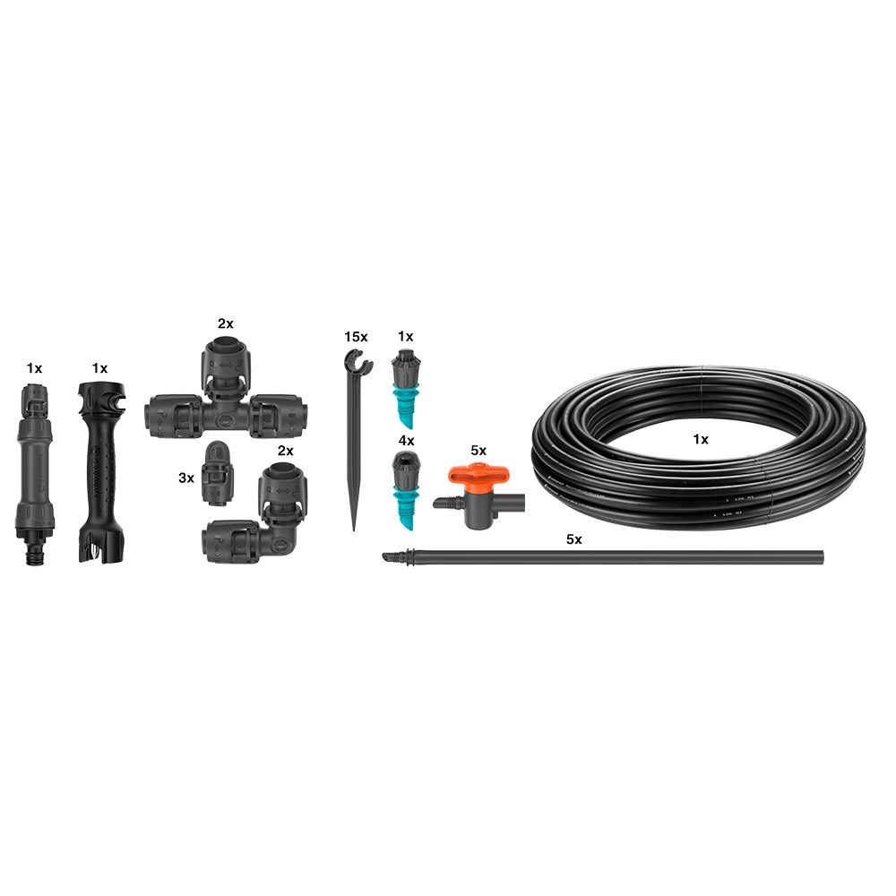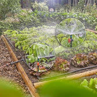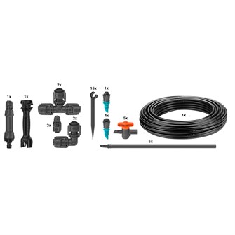 Micro-Drip vanding højbedsæt er en komplet løsning til vanding af højbede og andre plantearrangementer på en effektiv og økonomisk måde. Med dette sæt kan du nemt og hurtigt opsætte en drypvandingsløsning til op til 60 m2 af din have eller terrasse.