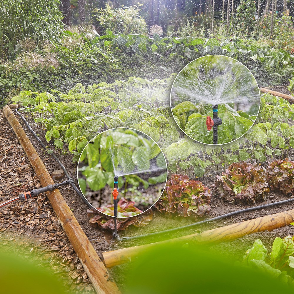 Drypvandingsløsningen sikrer en jævn og stabil vandstrøm, hvilket sikrer en effektiv og økonomisk vanding af dine planter. Med den medfølgende trykreguleringsventil kan du justere vandtrykket og opretholde en ensartet vandstrøm, selvom der er variationer i vandtrykket.
