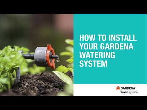 Basisenheden, som regulerer trykket i slangen, tilsluttes vandhanen ved bedet gennem et stykke vandslange, og en Gardena-forbindelsesslange leder vandet videre ud til selve drypslangen, som udlægges ved planterne og sørger for drypvandingen.