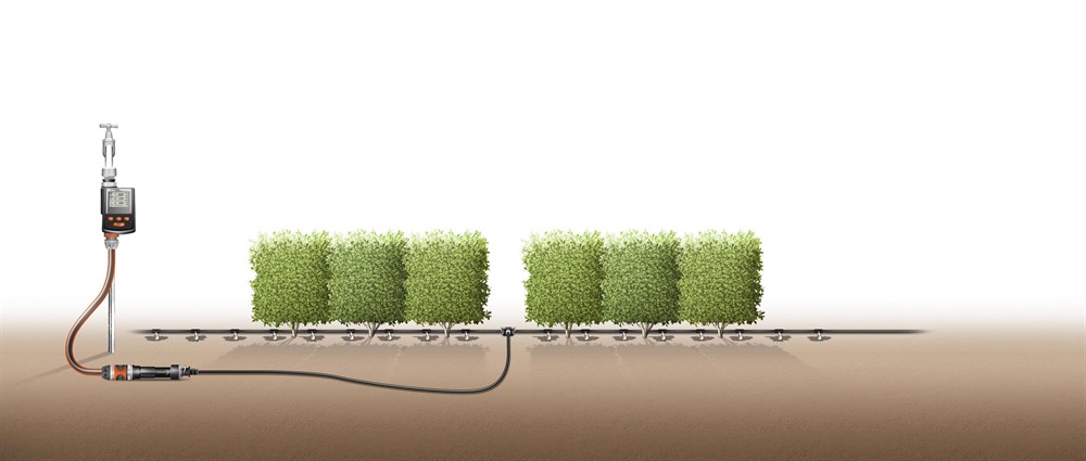 Dette sæt er til vanding af kortere rækker af planter som f.eks. en hæk eller mindre bede med pryd- og nytteplanter, som ikke tåler for massiv vanding, f.eks. tomatplanter.
