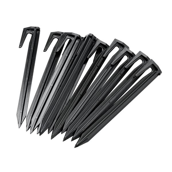 I dette sæt på 100 stk. kan du så tilkøbe dig yderligere pløkker til fastgørelsen, da terrænet nogle steder kan kræve lidt tættere afstande mellem punkterne for fastgørelse, f.eks. på ujævne arealer og ved hældninger.