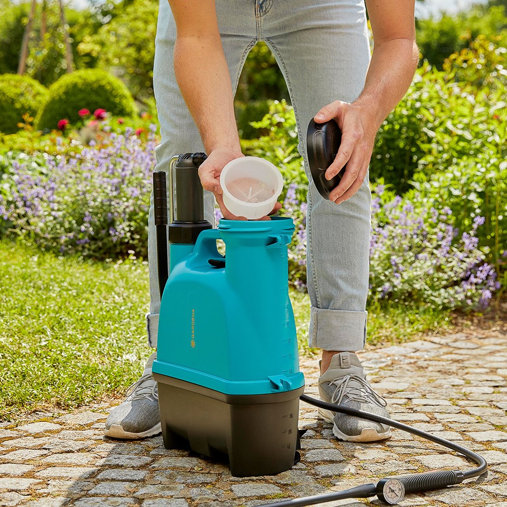 Denne rygsprøjte er programmets største hos Gardena. Her får du en effektiv, manuel sprøjte med hele 12 liters kapacitet - og du går ikke på kompromis med komfort eller effektivitet undervejs.