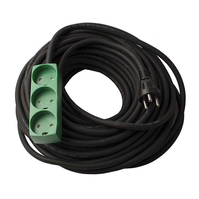 Grøn stikdåse m. 3 udtag og 10m Kabel m. jord